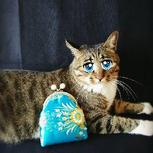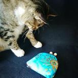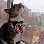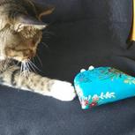 给猫做个围巾,猫太瘦了,所以把围巾的剪掉了一部分!