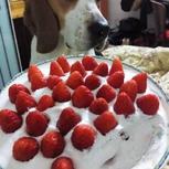 “奶油,草莓🍓”开吃,哈哈哈哈,馋死两死丫头了,哈哈哈哈晚上9点吃这个真的好吗?哈哈哈大半碗吃掉,好饱啊。