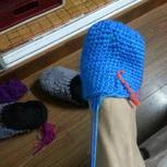 就多了这么点线,放着还是钩掉的好,来双毛线船袜,睡觉穿。