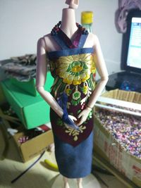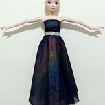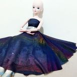 (゚ロ゚)!!这块雪纺本身是老板送的添头~结果没想到效果这么好!!!我的妈呀~美哭我~没找到合适的假发就索性光头~我得为这件衣服给她重新做顶假毛了~衬裙换蓝色或者白色雪纺效果可能会更好~明天再改改试试~鞋子换水晶鞋怎么样?