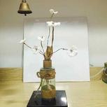 钩针编织花,瓶子是用废弃的化妆品瓶子进行加工一下,算是废物利用了