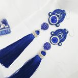 蓝色流苏soutache耳环