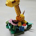 研究了一上午的立体衍纸长颈鹿,给儿子做个书桌小饰品