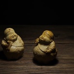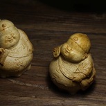 【竹雕·账房先生】卢培刚本工 竹根雕人物的又一巅峰之作。相对于传统的夸张手法,更加的写实生动,人物表情,体态特征描绘的淋漓尽致。憨态可掬的形象让你看着悦目舒心。账房先生,寓意财源圆滚滚,生意兴隆。寓意吉祥。两件作品全部落款。
