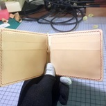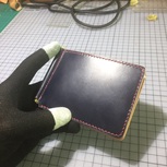 自己用就随便做了一个薄钱夹,夏天兜里装钱包很鼓很难看,此款钱夹避免了尴尬和烦恼(你问我现在移动支付这么方便出门还拿现金和包?我说我就喜欢现金带来的安全感!我就想让人看见我自己手工做的包!),这款外皮JE宝蓝色马缰,内皮意大利GVT原色植鞣。