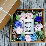 手作了一个礼盒,送给下周大婚的妹妹。 永生花和押花蜡烛的唯美组合。