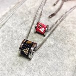 Joanna手作:波普吊坠(半成品) 技术解释:上部分每排双珠brick stitch增珠,下部分基本串珠流苏。Brick stitch技法见我发的教程。