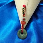 放了好久的红绿宝大珠子,终于派上用场了,做成这款毛衣链还真挺好看的,搭配毛衣真不错!