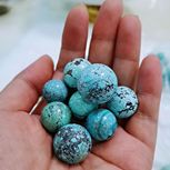 绿松石来之大自然的馈赠! 它像是女娲补天散落在人间的眼泪,可能是大自然的鬼斧神工吧,每一颗珠子都有它的颜色和姿态,每一颗都有它独一无二的淡雅和绚丽![合十] 最后一张图是顾客的定制款,已结缘![合十]