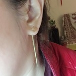 翻一下工具盒,找到一根0.76的批花线,就拆下一个耳环试一下~~~硬线太硬了,手指好痛啊……效果你们看,觉得哪个好看?