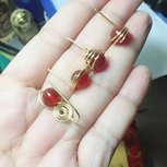 大晚上做了4个不同样子的上来,均是第一次试验的失败产品~~论工具的重要性,求推荐好的工具一套,木有弯嘴钳子绕个蚊香都会反了~~其实这4个款如果做整齐戴上效果好看的~~红玛瑙做耳钉效果挺好的~~