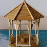 竹制品《凉亭》 材料:筷子,旧凉席 这个整体来讲并不是很满意,但不管怎么说也是‘亲生的’,也是第一次做凉亭类的建筑,加之时间紧,细节没有细化,哎,等以后有时间有机会再做的话,一定会比这个更好的