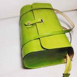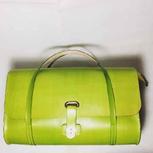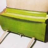 客人定制的翠绿色竹节手提包,按客人的要求加了拉链封口和内袋。植鞣革的变色特性,会让包包正如竹子一般会由翠绿变为深绿。