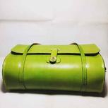手工牛皮植鞣革工具包、化妆包。无缝线铆钉固定款,轻巧的提手真的好有爱。