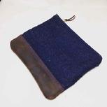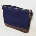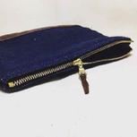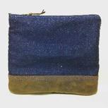 牛仔布、疯马皮拼接拉链袋