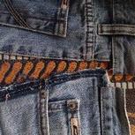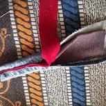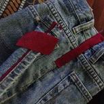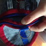#全民动手嘉年华#用老公闲置牛仔裤的裤头改造而成,添加了红色元素,让包包更有动感。