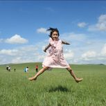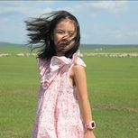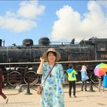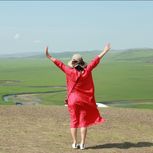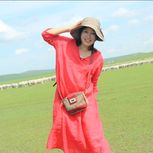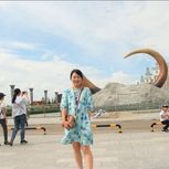 呼伦贝尔天真大。亚麻绿裙子在国门逛一圈